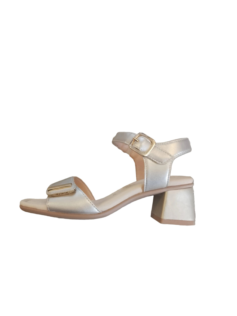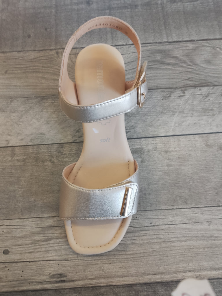In a stylish pale gold which also works well as a neutral this leather sandal from Remonte has a 1.5inch block heel and velcro fastenings across the forefoot and ankle to allow width adjustment. Available up to size 44.