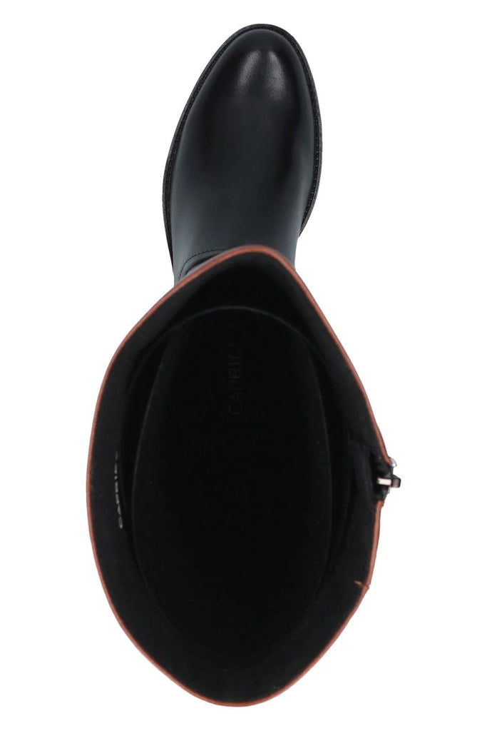 From Caprice with all the comfort of a Walking on Air foot bed and a non slip sole,this knee length boot in black and tan is both stylish and comfortable. Half sizes available