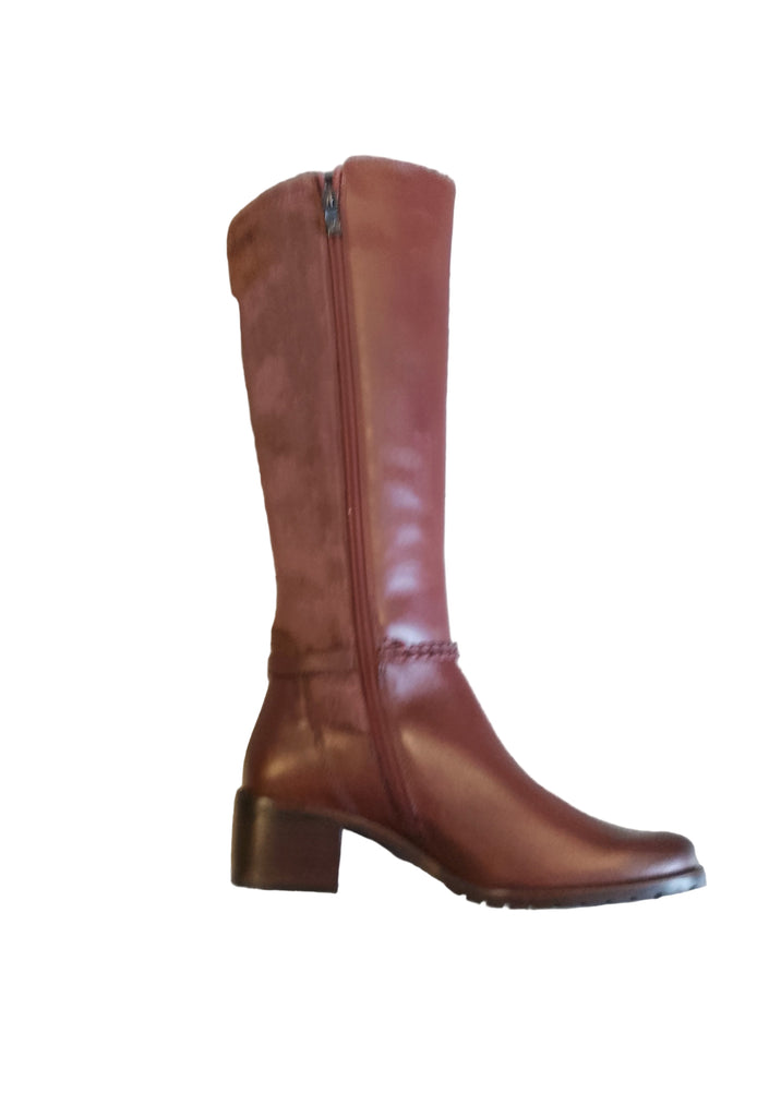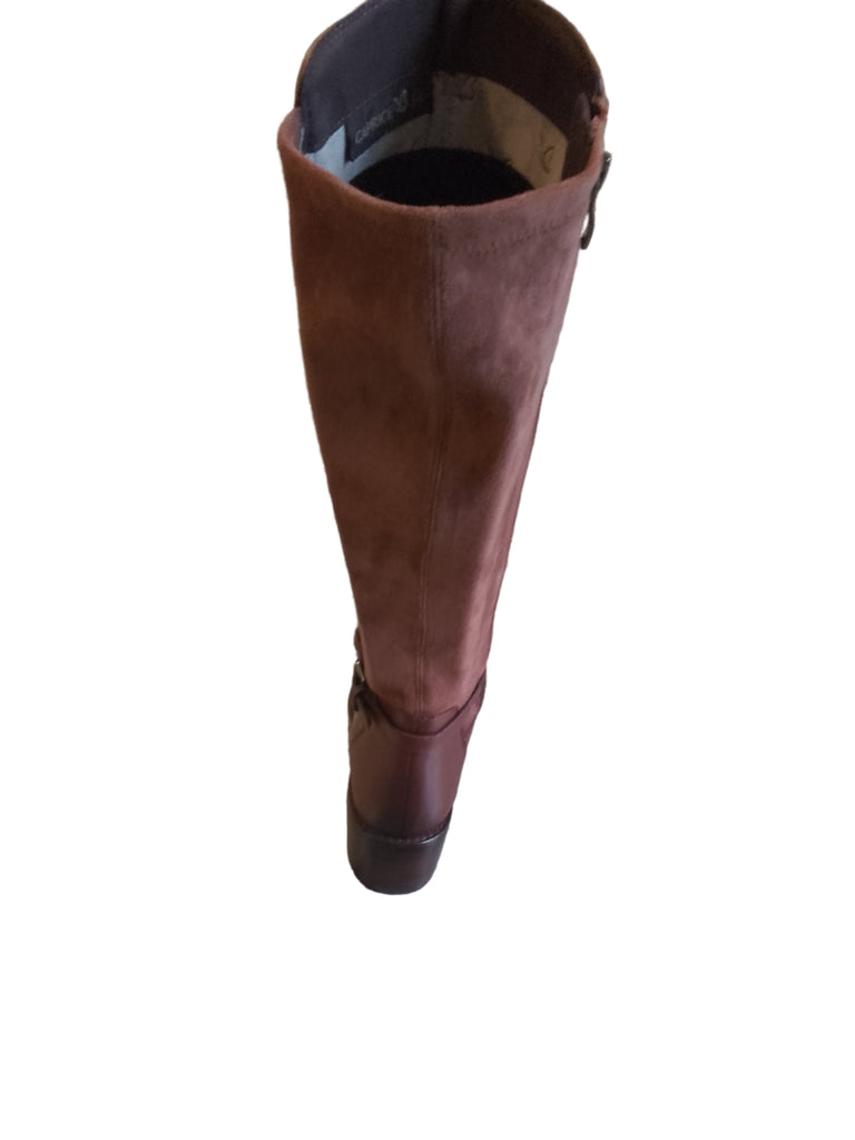 With all the comfort of Caprice Walking on Air cushioned foot bed technology and in soft Cognac brown leather with a stretchy back,this boot is just what you need this season.The boot has a side zip fastening and a 4cm block heel.