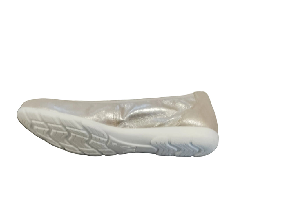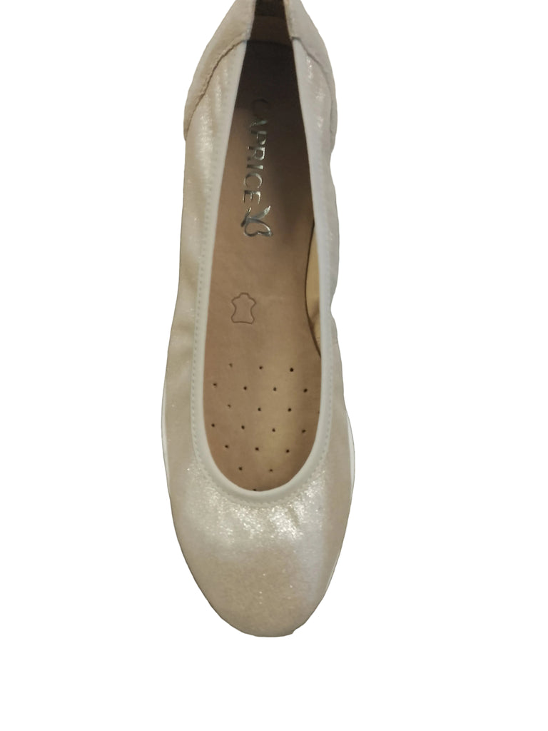 In soft shimmery leather , this ballerina pump has all the comfort of Caprice Walking on Air technology. The shoe has slight elastication around the foot for a perfectly comfortable fit and a non-slip sole.