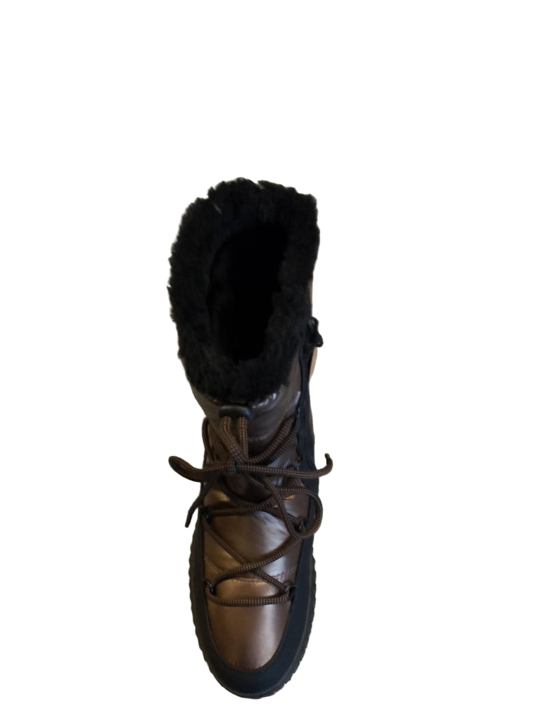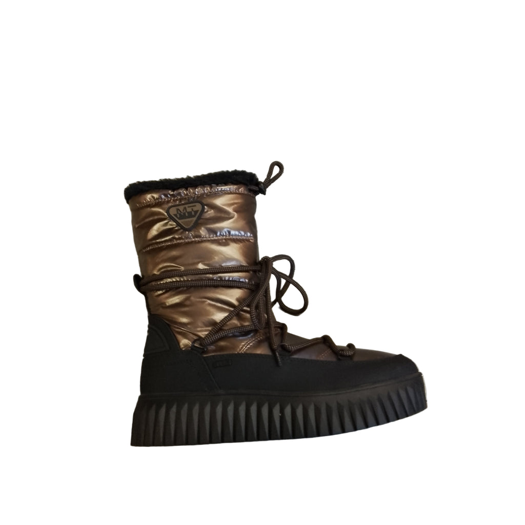 A stylish weather proof boot from Marco Tozzi with a chunky platform sole and laces as well as zip fastenings. The boot is fully lined with faux fur to keep you warm and dry. From Marco Tozzis' vegan range.