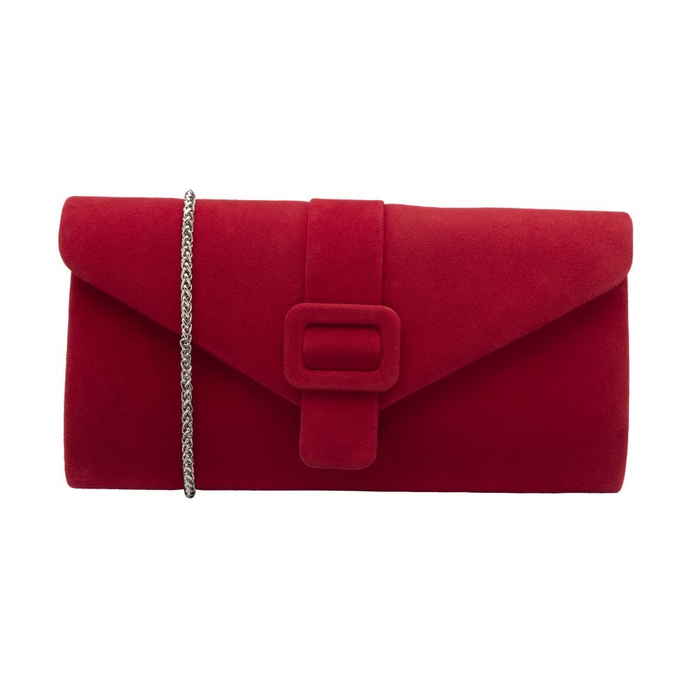 From Lotus In gorgeous ruby suede, this clutch bag has a detachable shoulder strap and matches the Henley court shoe perfectly